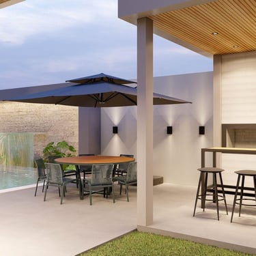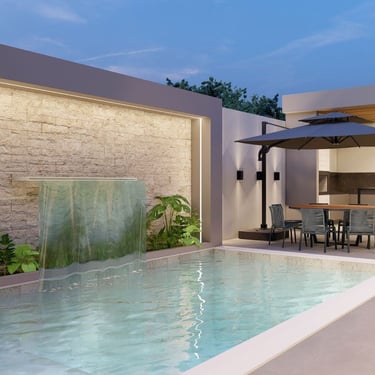 Na área externa, o cliente queria uma área de churrasqueira moderna, mas compacta, e uma piscina com cascata. Conseguimos atender a todas as demandas, criando uma residência funcional e esteticamente agradável. Quando apresentamos a proposta, os clientes ficaram emocionados, um momento inesquecível para todos.
