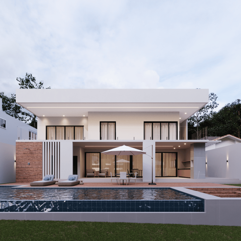 Este sobrado é uma residência espaçosa e moderna, com cinco quartos e uma piscina com borda infinita. A casa foi projetada com atenção aos detalhes, visando proporcionar conforto e elegância para seus moradores