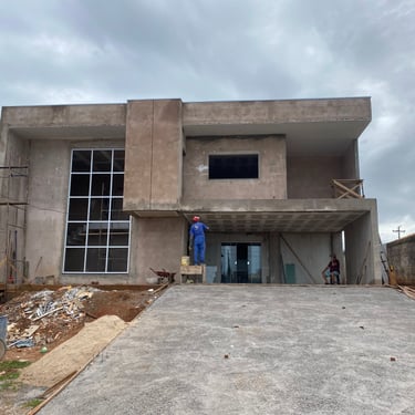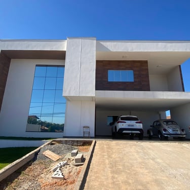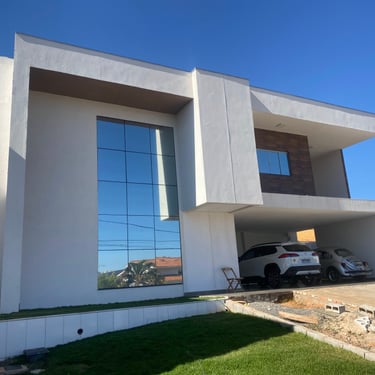 Neste projeto, preservamos o projeto original da casa, mas fizemos uma transformação significativa na fachada. Criamos uma fachada moderna de dois andares, que se destaca pela sua estética moderna e inovadora.