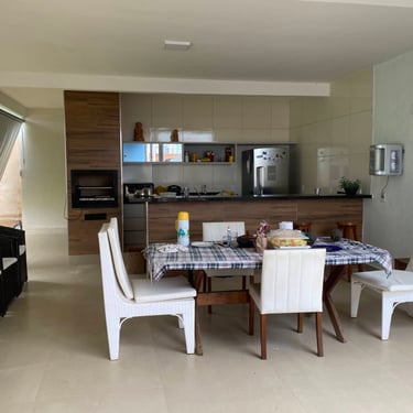 Adicionalmente, criamos uma nova área de churrasqueira com cozinha, bem ampla, onde os proprietários podem receber amigos, familiares e, principalmente, os netos. Este espaço foi pensado para ser o coração das reuniões e celebrações, proporcionando um ambiente agradável e funcional para todos.