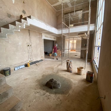 No térreo, desenvolvemos uma grande sala de estar com pé direito duplo, proporcionando amplitude e luminosidade ao ambiente. Esta mudança não apenas valorizou o espaço interno, mas também conferiu um caráter imponente e elegante à residência.